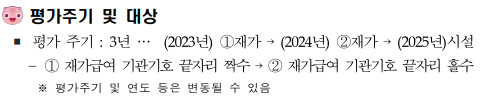 평가는 3년 주기로 진행되며, 짝수 해와 홀수 해에 따라 기관이 나뉘어 평가됩니다.